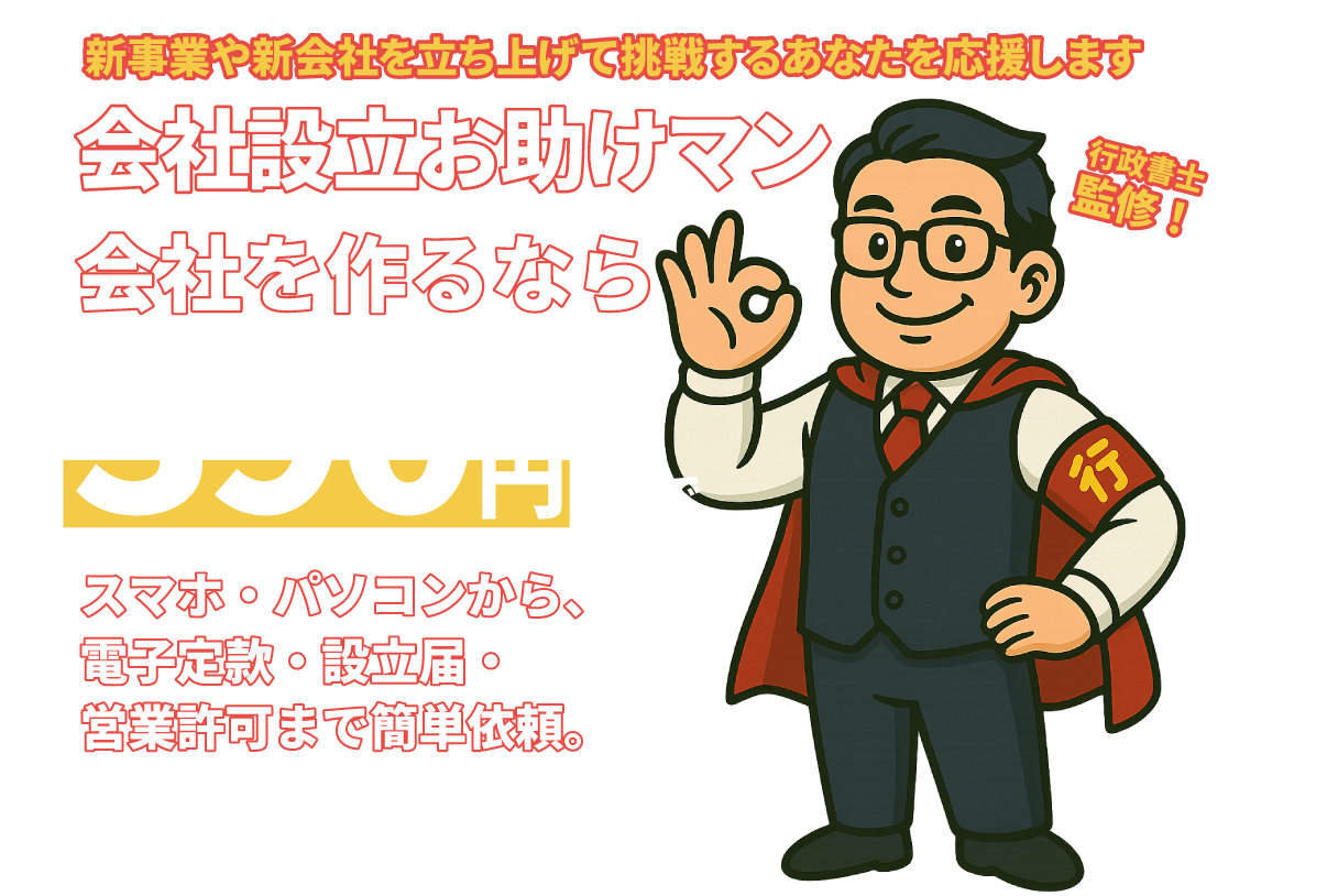 さらに、設立後も、一般的な行政書士に依頼すると毎回数万円かかるような書類作成を、定額・月額390円でサポートします。