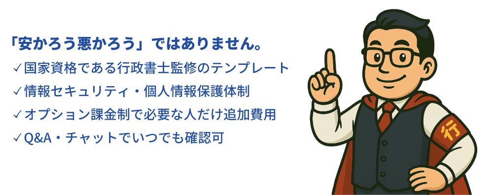 ご安心ください。行政書士が監修したフォーマットを使い、必要な手続きを正確にサポートします。